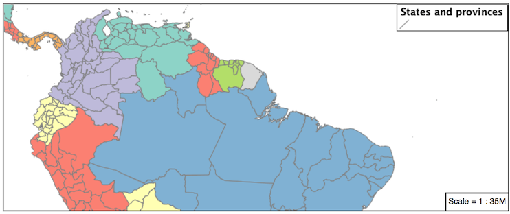 ne:states_provinces_shpdataset, a mapcolor9 attribute has been provided for this purpose. Theming by mapcolor9 results in a map where neighbouring countries are visually distinct.Qualitative 9-class Set3 #8dd3c7 #fb8072 #b3de69 #ffffb3 #80b1d3 #fccde5 #bebada #fdb462 #d9d9d9 If you are unfamiliar with theming you may wish to visit http://colorbrewer2.org/js/ to learn more. The i icons provide an adequate background on theming approaches for qualitative, sequential and diverging datasets.