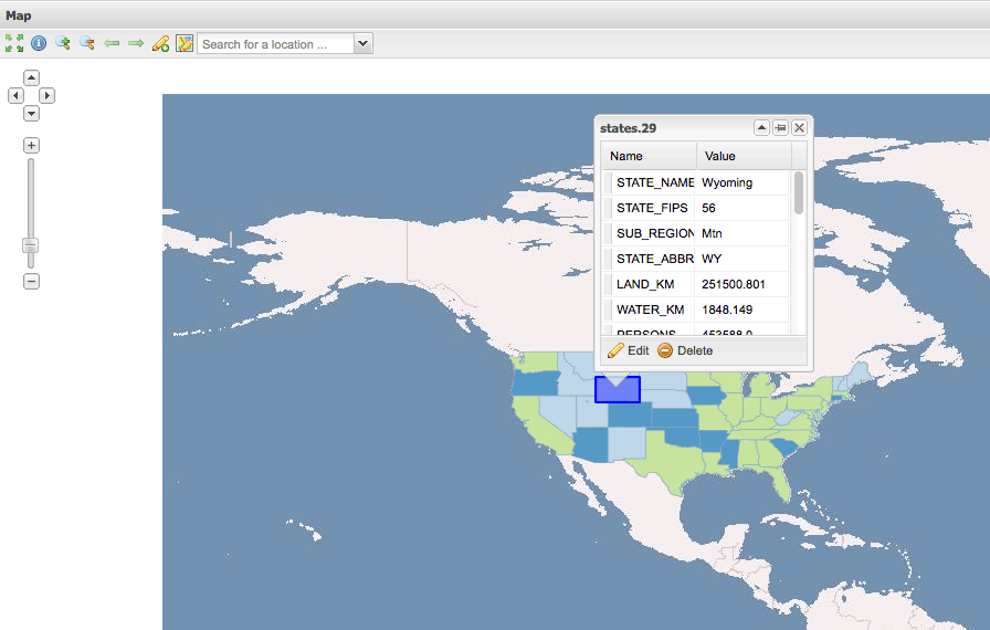 Clicking on the Edit existing feature button, followed by clicking on a state in the map, will result in a popup:
